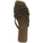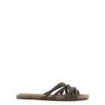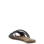 Leather slides, Contrast stitching, Suede insole, Leather and rubber sole.
