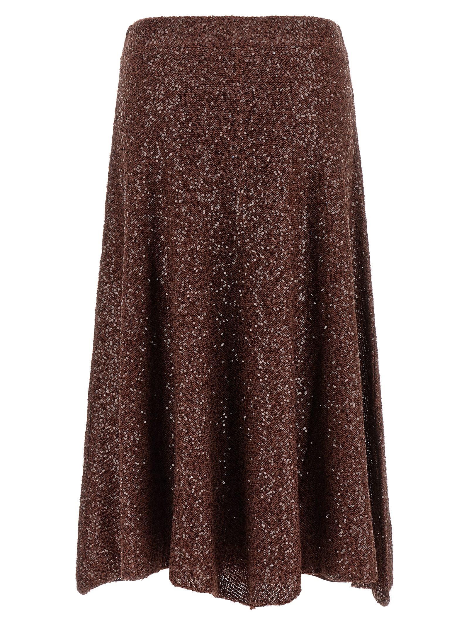 Midi skirt in linen blend knit with all-over micro sequins, flared cut, soft hem, silk underskirt, elastic waistband.