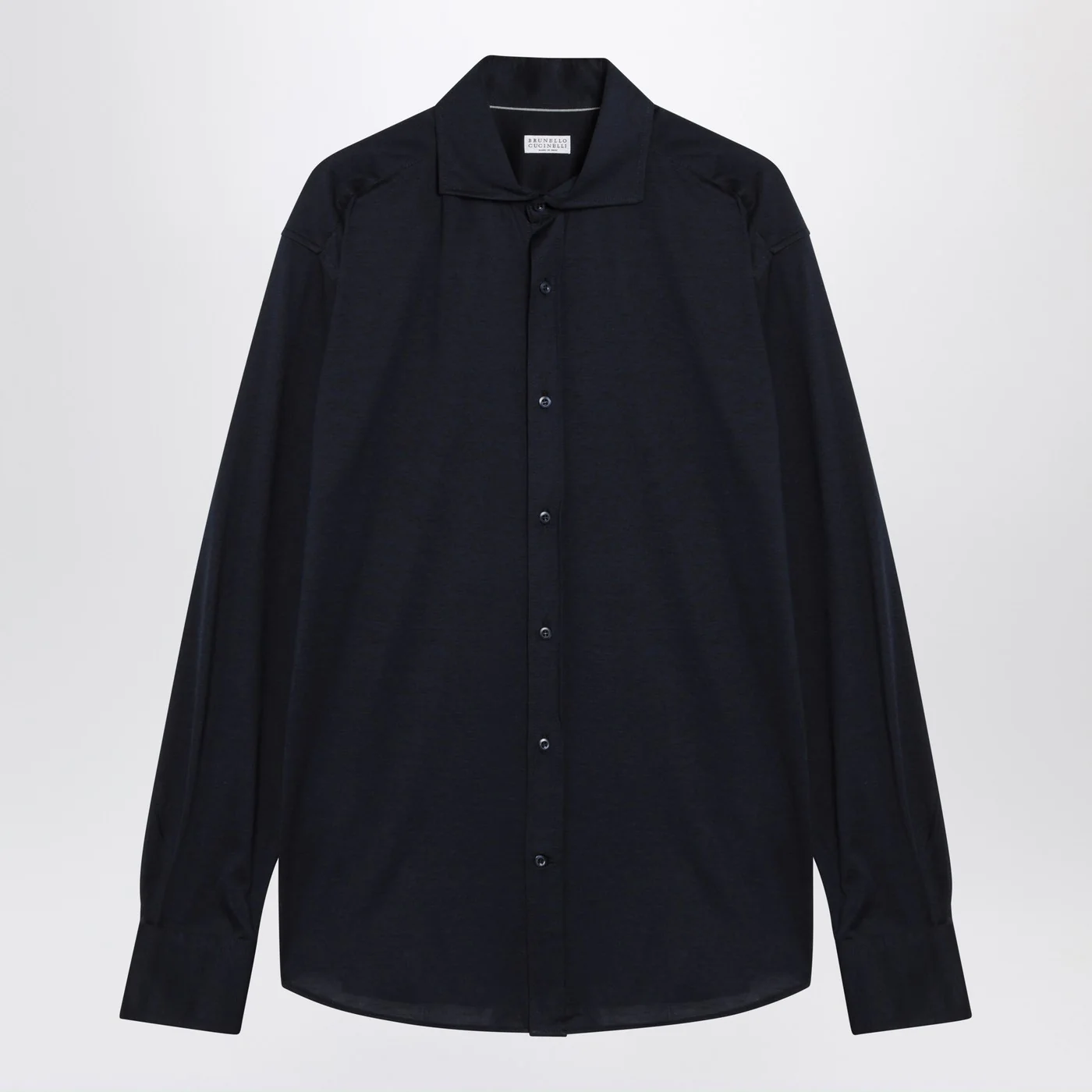Brunello Cucinelli Navy blue silk and cotton shirt