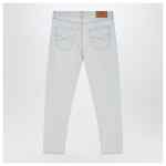 Brunello Cucinelli jeans in light blue cotton denim, featuring a front zip and button closure, belt loops, a back logo patch, a small logo embroidery on the front, five classic pockets, and visible stitching.