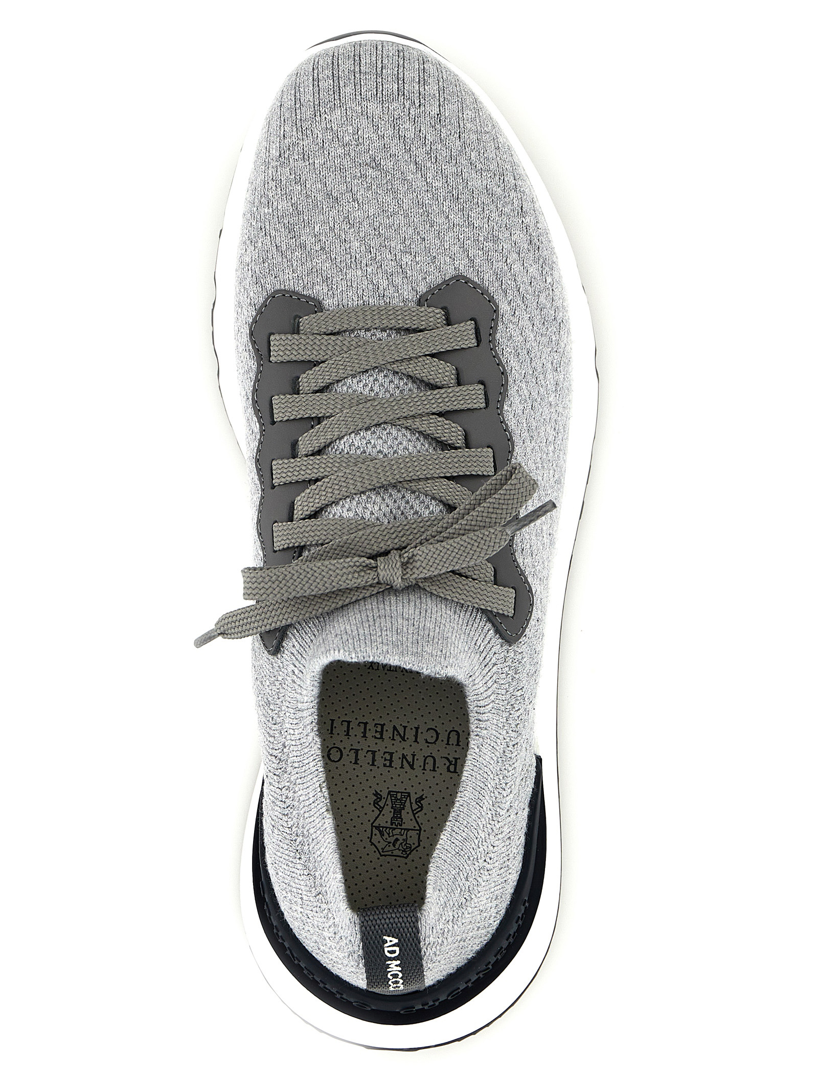 ‘Runners’ sneakers in cotton knit with tone-on-tone semi-gloss calfskin details, slip-on style, laces, removable insole, micro-lightweight sole.