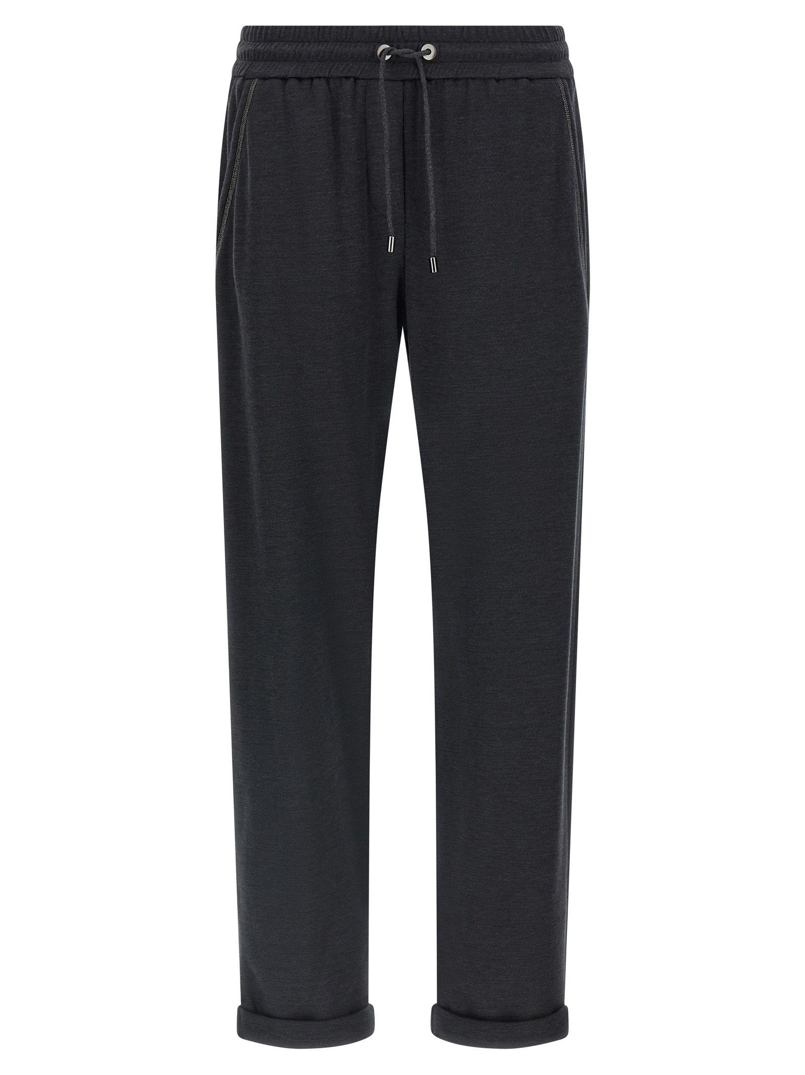 Cotton and silk interlock joggers with straight leg, drawstring elastic waistband, pockets with Monile ‘Shiny Pocket Detail’ detail, turn-up hem.