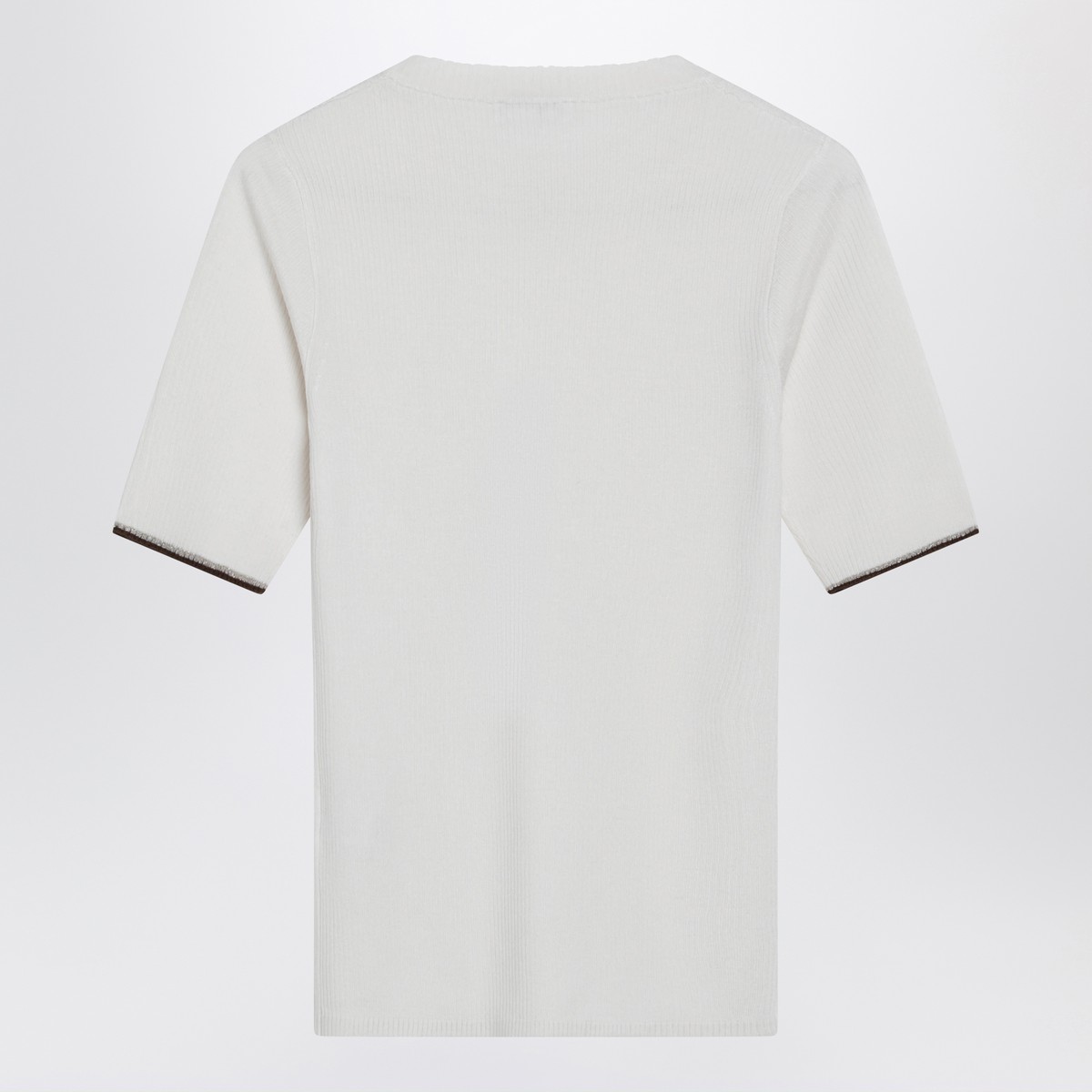 Brunello Cucinelli white cotton and silk-blend crew-neck top, featuring short sleeves with a subtle shimmering thread trim and a ribbed design.