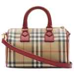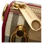 beige signature check pattern rolled top handles detachable shoulder strap zip closure padlock detail Bowling mini bag