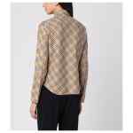 Beige cotton Burberry shirt with an all over check pattern, featuring a button-down collar, long sleeves with buttoned cuffs, logo embroidery on the front, a curved hem and a front button placket.