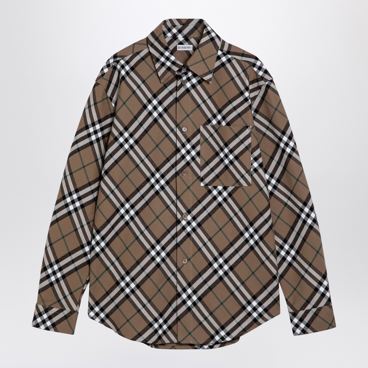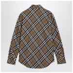 Long-sleeved shirt by Burberry in beige Check cotton featuring a classic collar, front button placket, chest pocket, button cuffs and curved hem