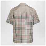 Burberry sand-coloured shirt with shaded Check pattern, featuring short sleeves, front button closure, straight hem and bowling collar.