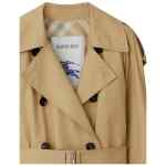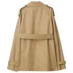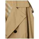 beige cotton wide notch lapels long sleeves belted cuffs double-breasted button fastening belted waist two side inset pockets checked lining straight hem Cotton trench coat