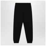 Black lightweight terry-effect cotton jogging trousers by Burberry, featuring elasticated waist with internal drawstring, two side pockets, one rear patch pocket, and contrasting logo lettering on the front.