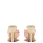 light pink/yellow leather shearling lining check print open toe branded insole logo at the sole 105mm high heel Pool Check sandals