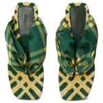 fern green/citron pale yellow check pattern thong strap open toe branded footbed flat sole Pool Check thong sandals