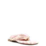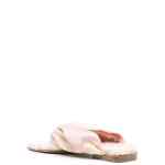 light pink/yellow square open toe satin strap check print branded insole terry-cloth effect lining signature Equestrian Knight motif at the sole flat leather sole Check thong sandals