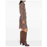 light brown/black/white nova check pattern cut-out detailing spread collar front button placket long sleeves buttoned cuffs belted waist straight hem above-knee length cotton lining We’ve partnered with Good On You — an independent agency that rates how brands perform in relation to their impact on the planet, people and animals, with a multi-criteria rating simplified to a five points scale. In order to be awarded our conscious label, larger brands need to score a minimum of four out of five (‘Good’), while smaller brands must score at least three out of five (‘It’s A Start’). This item comes from a brand rated three out of five (‘It’s A Start’) by Good on You at the time it was added on FARFETCH. Please note, this is a brand-level rating and does not guarantee that this product is made with conscious materials. Learn more about what makes a product Conscious on our Conscious Criteria page Check wool blend chemisier dress