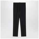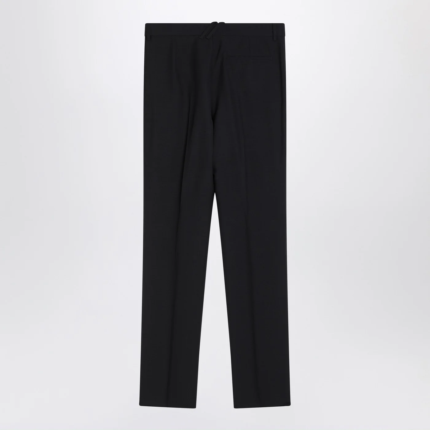 Navy blue wool and mohair trousers from Burberry featuring a front zip and hook fastening, waist loops with logo detail, a back welt pocket and two side welt pockets.