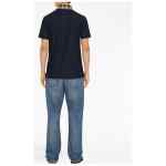 navy blue cotton jersey knit Vintage Check pattern contrasting collar front button placket short sleeves straight hem Check collar cotton polo shirt