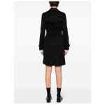 black gabardine weave logo-engraved buttons belt loops epaulettes D-ring findings storm flap notched lapels long sleeves belted cuffs buttoned central rear vent two front welt pockets double-breasted button fastening detachable and adjustable waist belt straight hem house check pattern lining Chelsea cotton trench coat