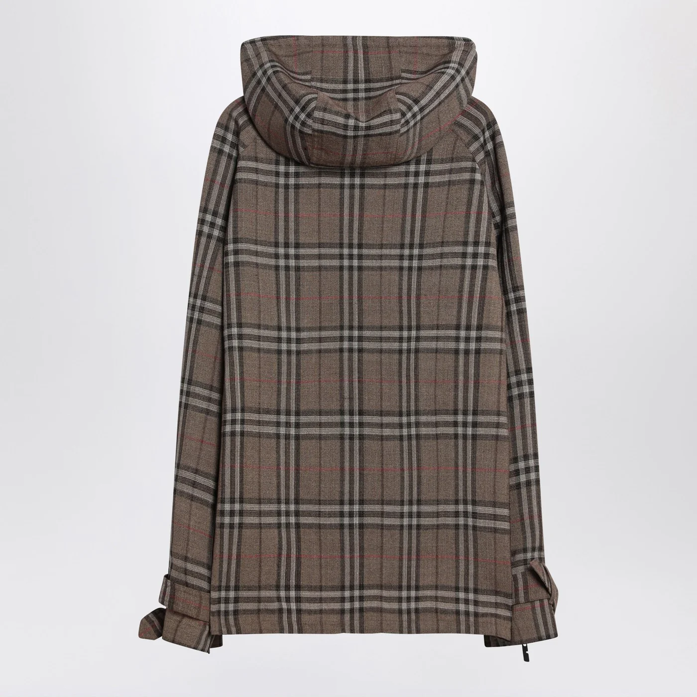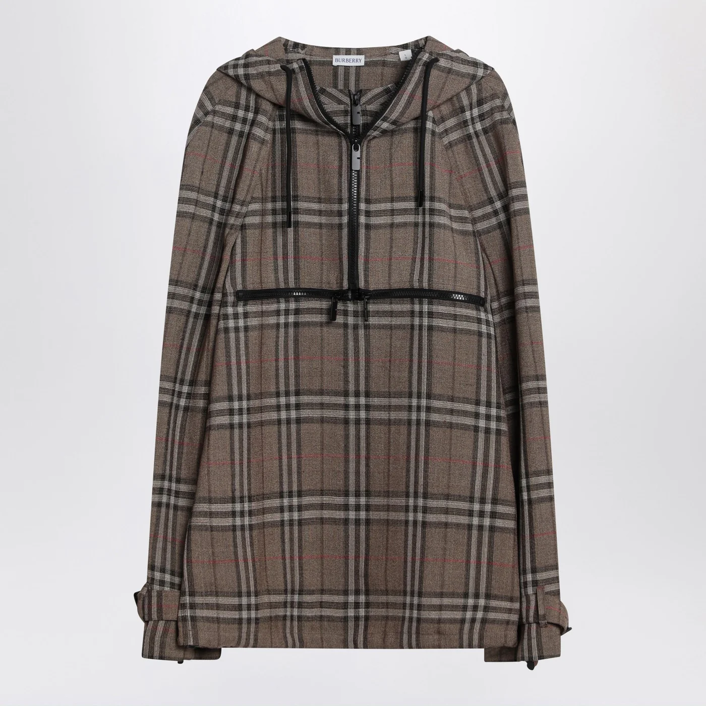Burberry jacket in a silk and viscose blend with an all-over Check pattern featuring a hood with drawstring half zip at the front comfortable fit unlined design drawstring at the bottom zip pocket at the front two side patch pockets and long sleeves with zip cuffs and adjustable strap.