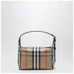 Burberry small bag in a cotton and linen blend with smooth calfskin leather trims featuring jacquard Check pattern, adjustable leather shoulder strap, zip closure, hand-painted edges, brushed metal detail, leather label with EKD on the front and front logo lettering.