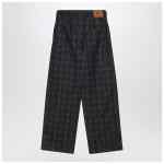 Burberry jeans in indigo blue cotton denim with an all-over Check jacquard pattern, featuring wide legs with double pleats at the front, a coordinating fabric belt with a B-shaped buckle and a metal D-ring, a closure with a hook, button, and zip, one welt pocket with a button at the back, two side welt pockets, and a patch with Equestrian Knight Design at the back.