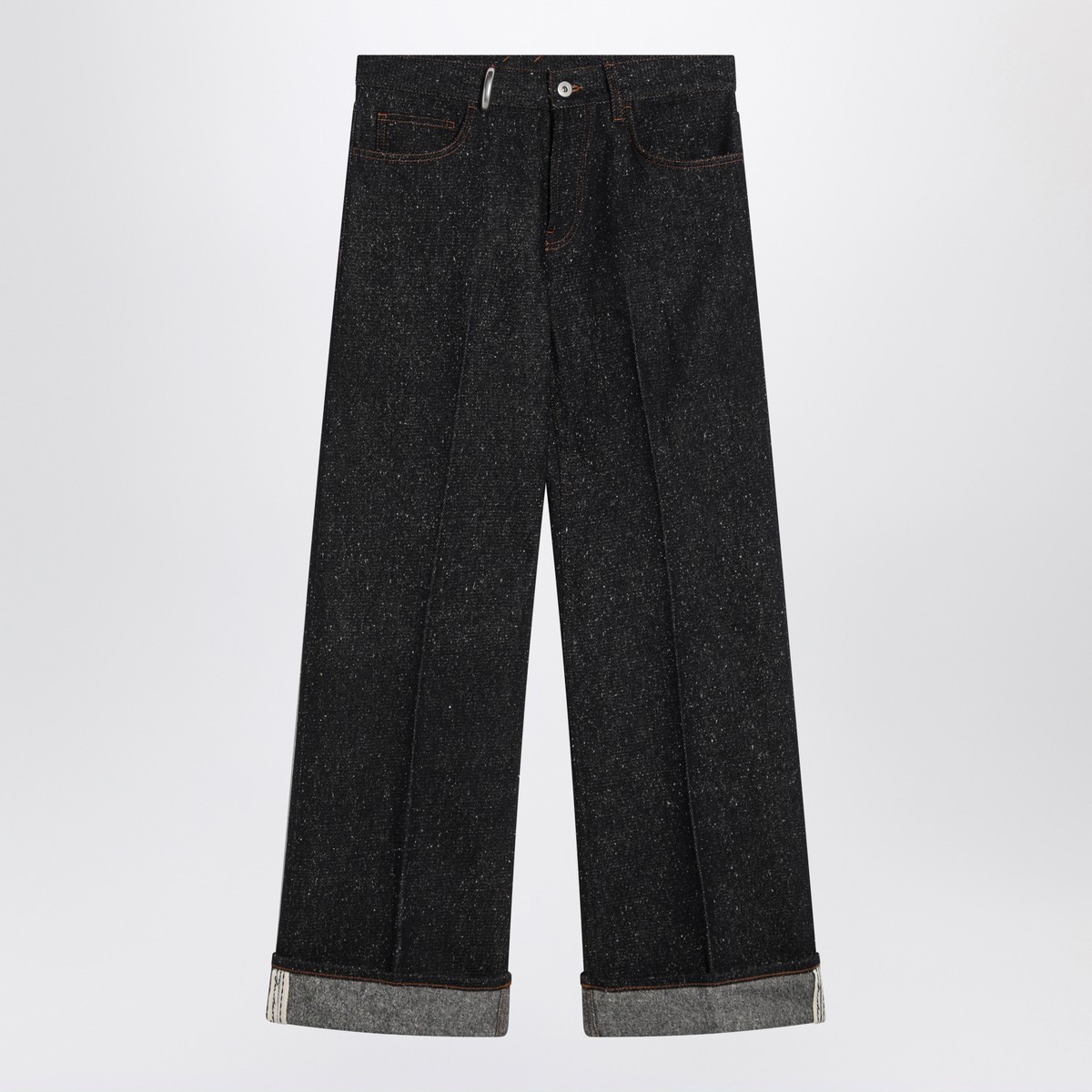 Burberry jeans in indigo cotton blend denim, featuring a front zip and button closure, belt loops including one in metal, five classic pockets, a cuff at the leg opening, and a crease at the front.