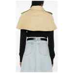 taupe, collared, double-breasted button fastening, buttoned epaulettes, flap detail. Cotton trench cape
