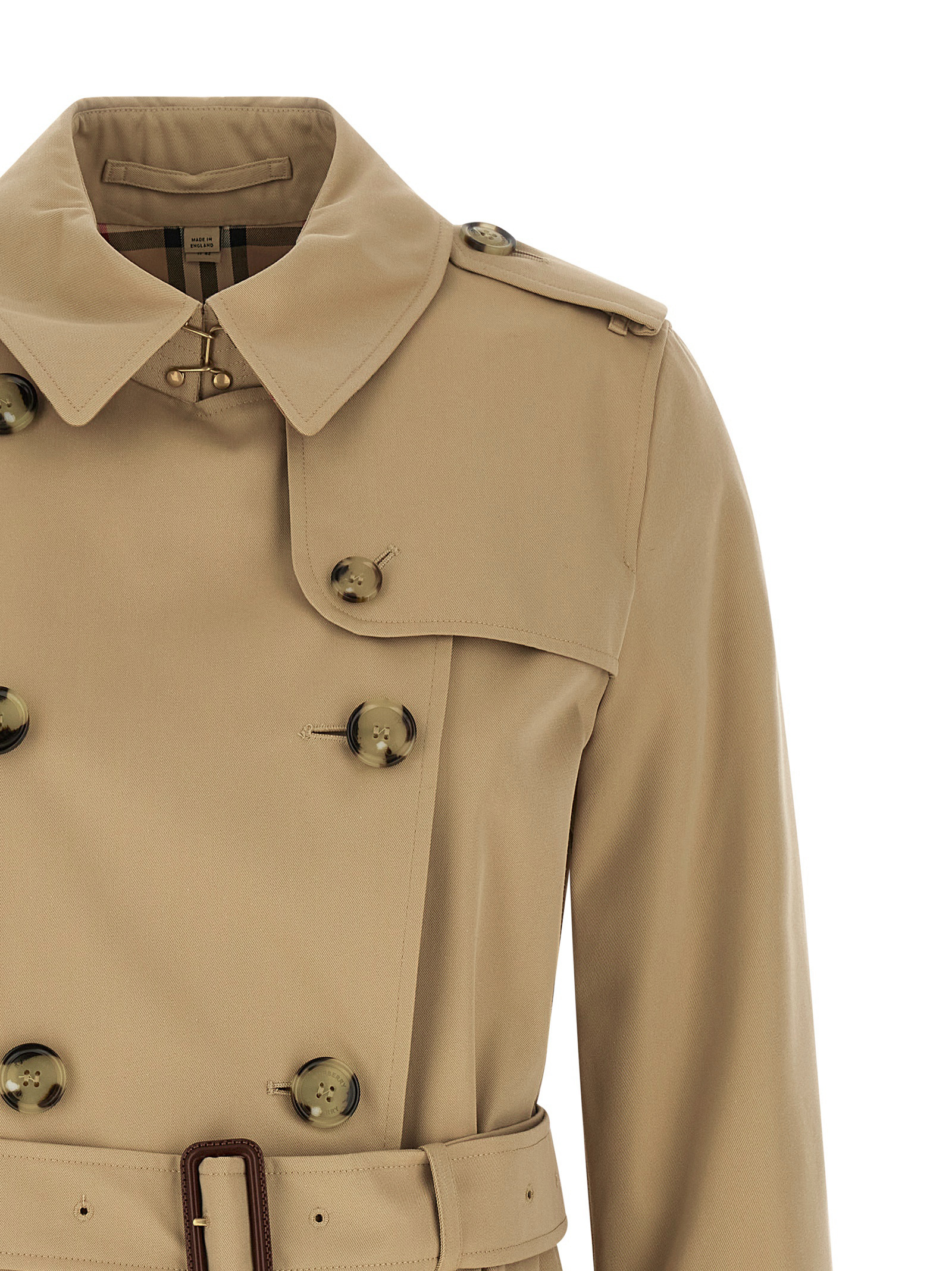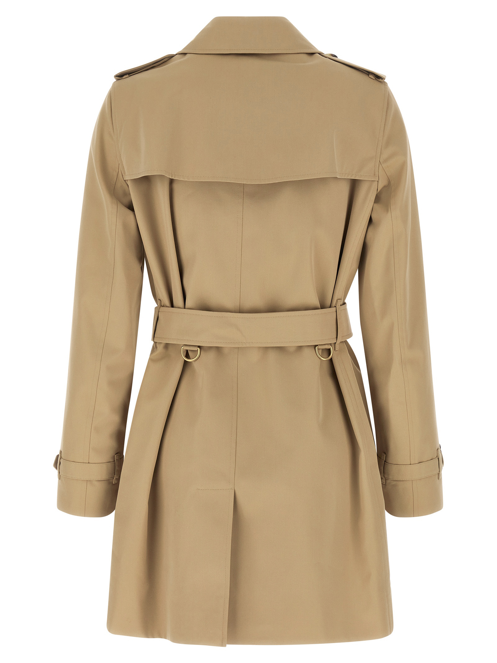‘kensington’ short double-breasted cotton trench coat with button closure, Belt at the waist, Pockets, Long sleeves, Back vent.