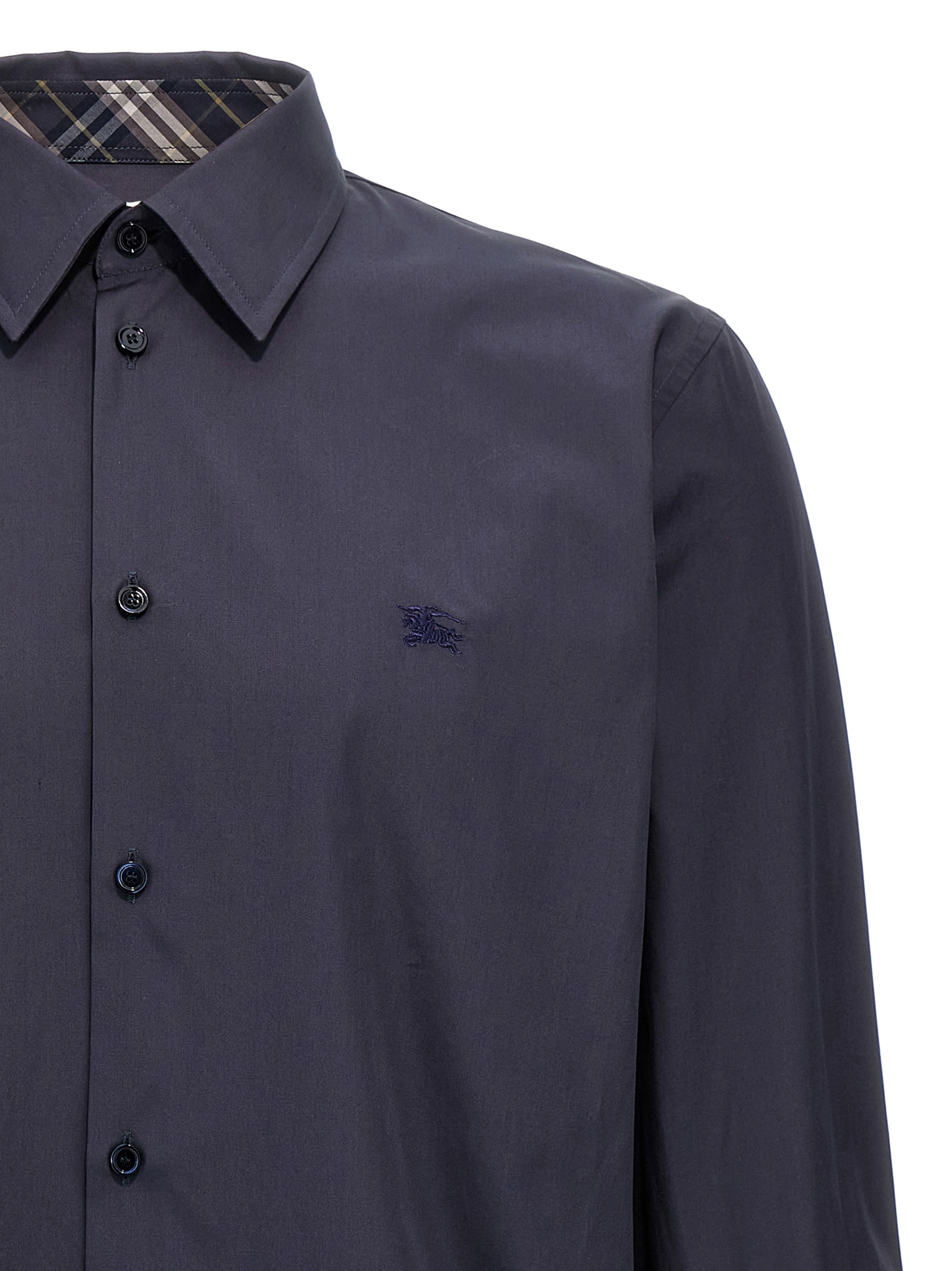 Cotton shirt with tone-on-tone embroidered logo on the front, Button closure, Long cuffed sleeves.