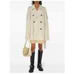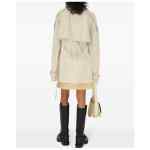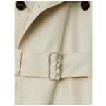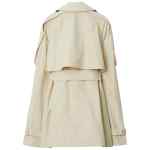 light beige silk notched lapels double-breasted button fastening belted waist storm flap long sleeves belted cuffs straight hem Silk short trench coat
