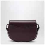 Small Burberry bag in dark raspberry purple leather, featuring a saddle-shaped design with a slightly curved profile, an adjustable shoulder strap, a fold-over flap with magnetic closure and b-shaped clasp, one external slip pocket, two internal pockets and brushed metal hardware.