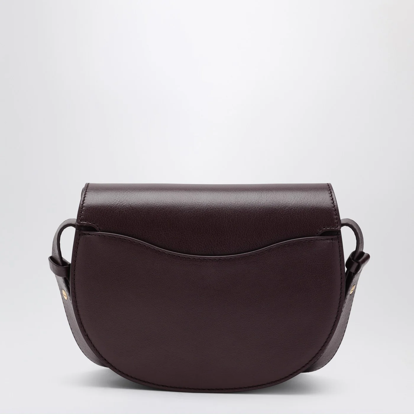 Small Burberry bag in dark raspberry purple leather featuring a saddle-shaped design with a slightly curved profile an adjustable shoulder strap a fold-over flap with magnetic closure and b-shaped clasp one external slip pocket two internal pockets and brushed metal hardware. Size and Fit – 24 x 8 x 20.5 cm Adjustable shoulder strap length min 26.5 cm – max 54 cm