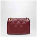 Medium shoulder bag by Burberry in quilted burgundy leather characterized by a chain and leather shoulder strap, fold-over flap with magnetic closure, internal zip pocket, hand-painted edges, brushed metal elements, EKD engraved on the front and cotton lining.