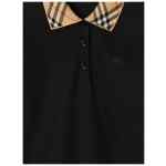 black checked collar button fastening short sleeves embroidered logo cotton Check collar cotton polo shirt