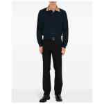 navy blue cotton piqué weave contrasting collar short front button fastening long sleeves ribbed cuffs straight hem Check collar cotton polo shirt