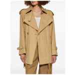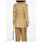 beige cotton gabardine weave classic collar epaulettes long sleeves belted waist belted cuffs straight hem Cotton trench coat