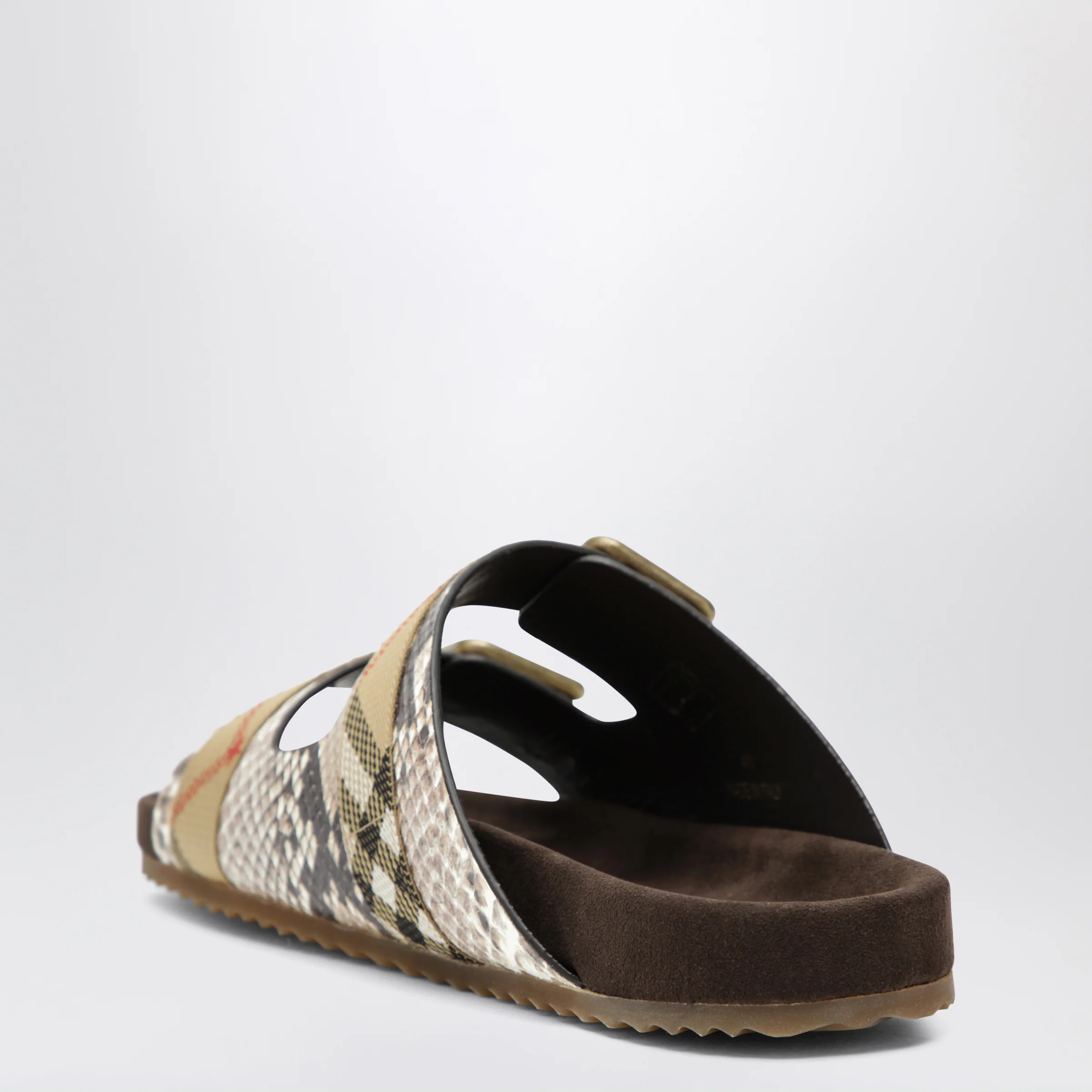 • Adjustable straps with B-shaped buckles and beige Check jacquard pattern