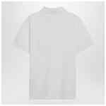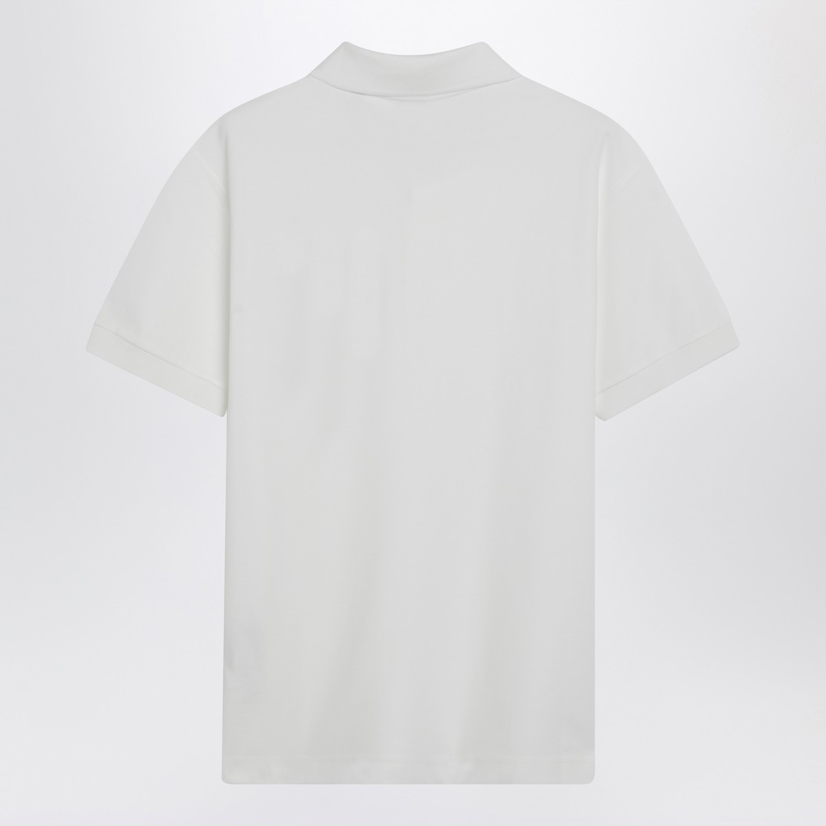 White cotton polo shirt by Burberry, featuring short sleeves, front buttons, and embroidered Equestrian Knight Design logo on the chest.