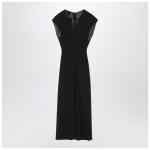 Calvin Klein black midi dress, characterized by a semi-transparent design, integrated slip with straps, waist belt, cut out at the front, and zip closure at the back.