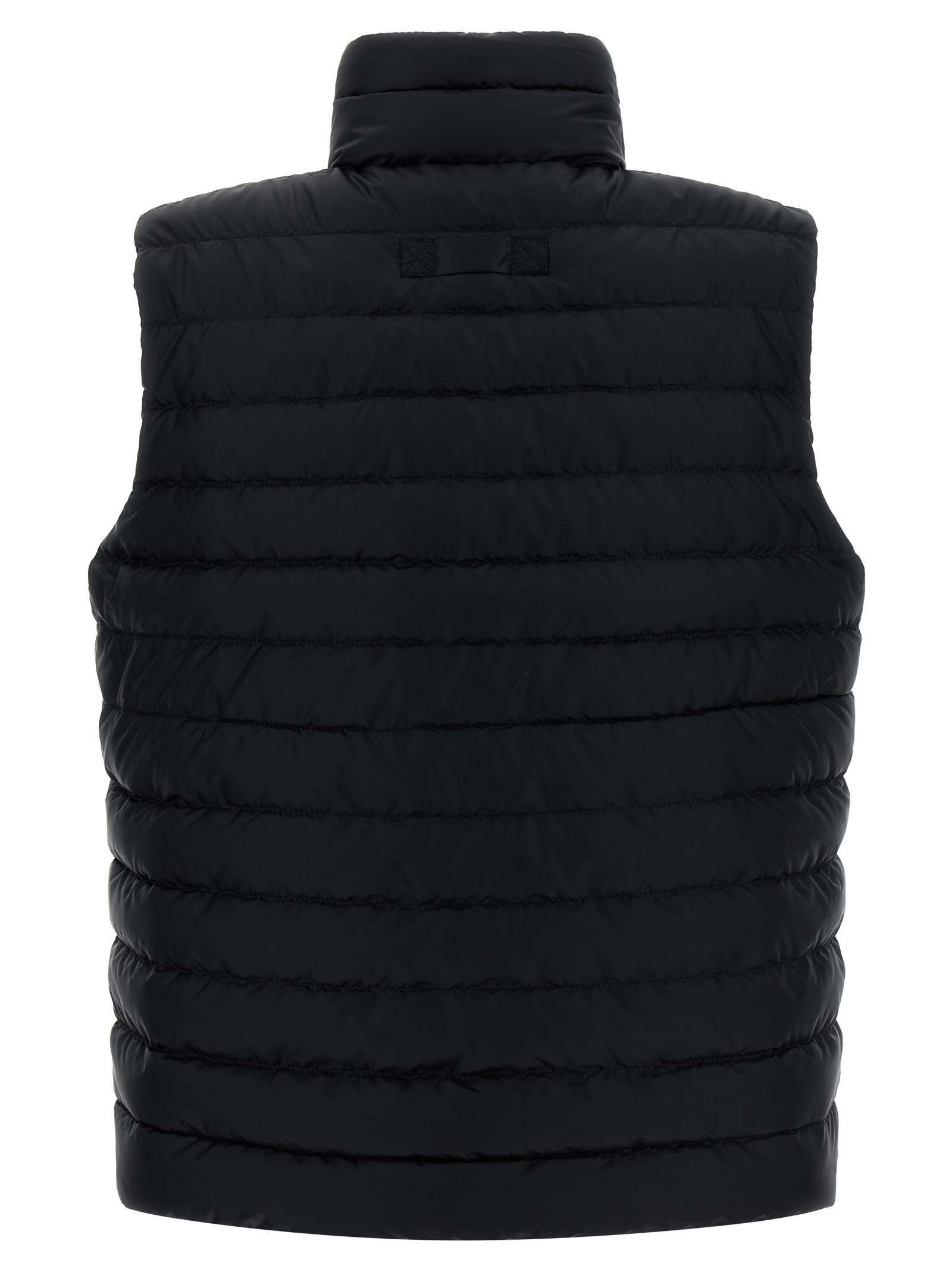 ‘Aethera’ vest in quilted technical fabric slightly padded with duck feather, tone-on-tone logo patch and front zip closure, standing collar, pockets, drawstring on the hem._x000D_