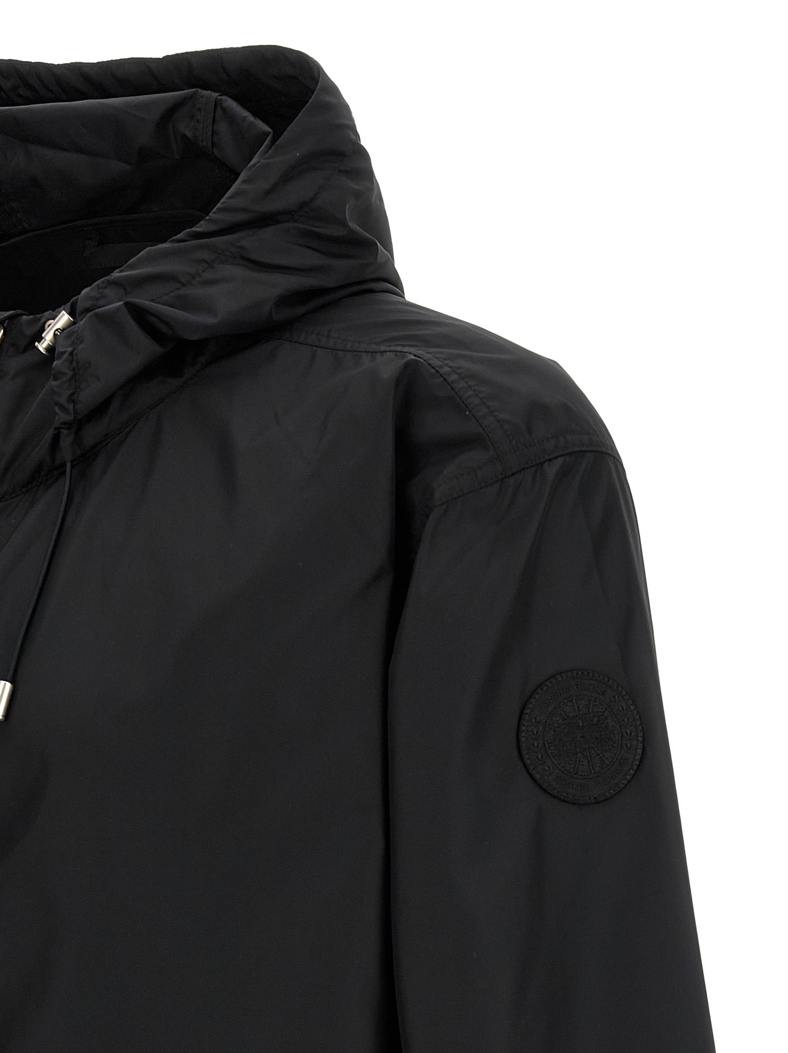 ‘drift’ braided nylon jacket with slightly glossy smooth weave structure, Unlined, Adjustable hood, Front zip closure, Pockets, Long sleeves with elastic cuffs and tone-on-tone logo patch appliqué, Drawstring on the hem. Size and Fit – true to size fit