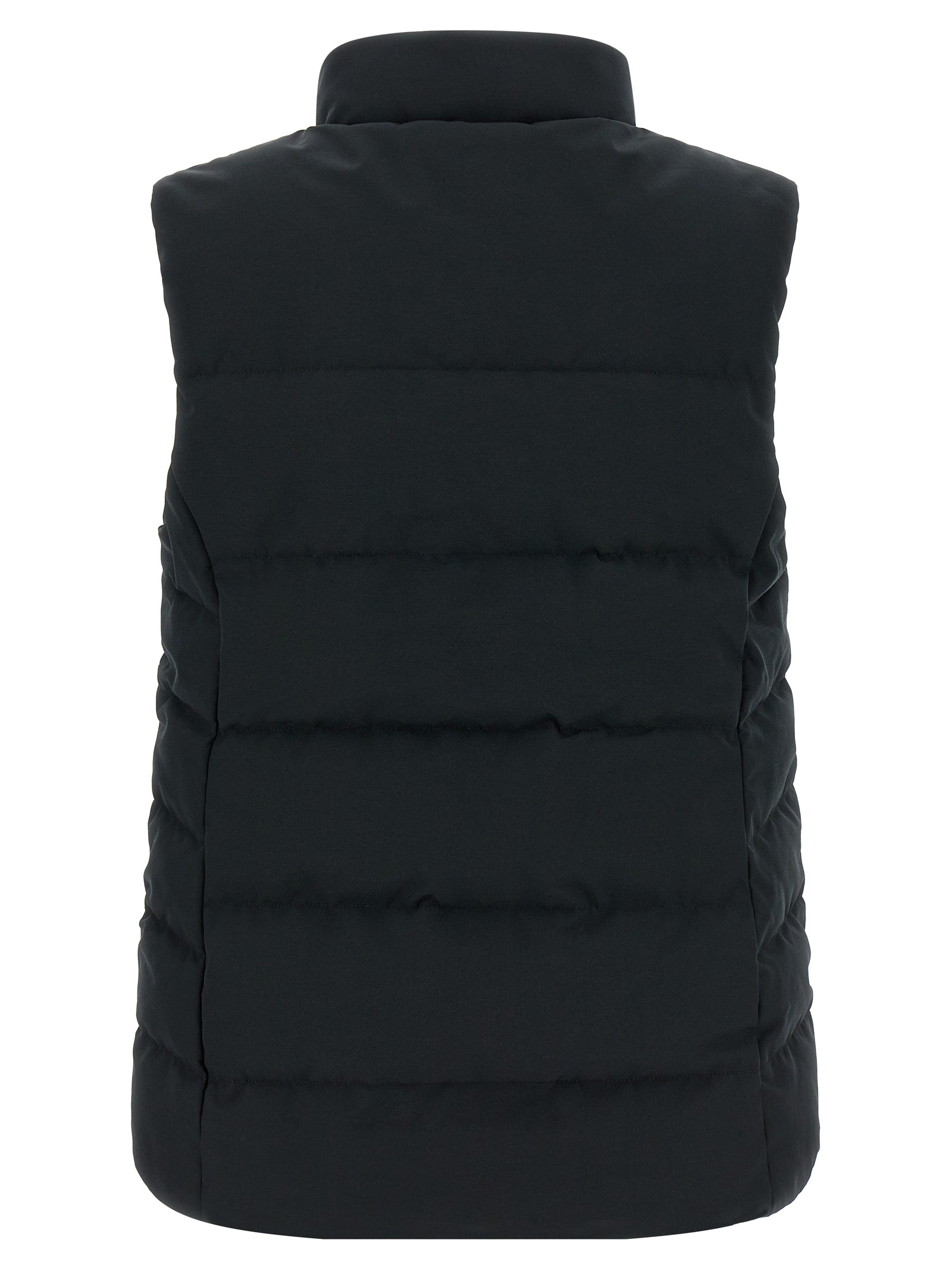 ‘Freestyle’ vest in water-repellent Arctic Tech® fabric quilted and duck feather padding, logo patch and front zip and snap button closure, standing collar with brushed tricot lining, pockets, asymmetrical hem._x000D_