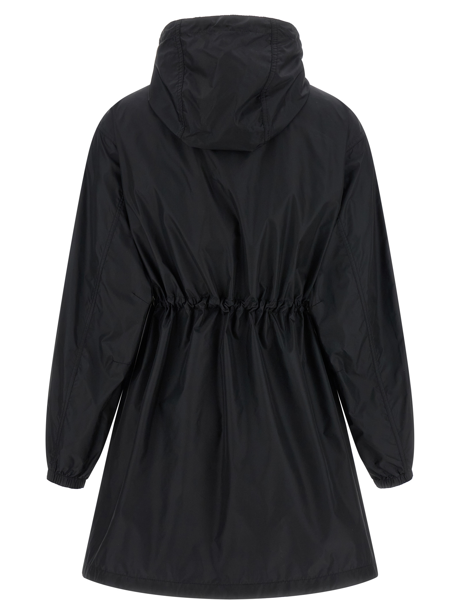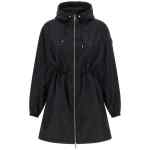 ‘lume’ parka in rainproof and windproof fabric, Hooded high neck and adjustable elastic drawstring, Front zip closure, Adjustable drawstring at the waist, Side pockets with hidden zip, Long sleeves with elastic cuffs, Side logo patch. Size and Fit – True to size fit