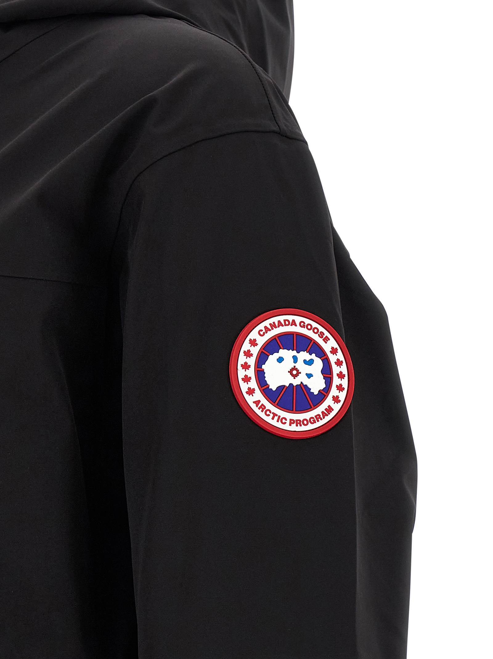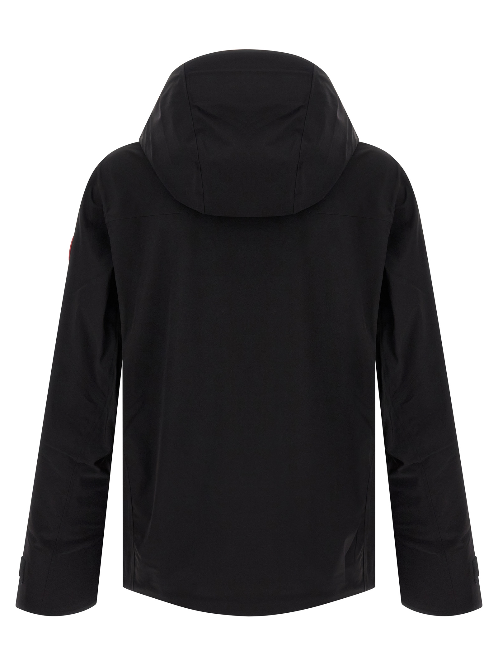 ‘Rupert’ waterproof three-layer flexible fabric rain jacket with fully heat-sealed seams, adjustable hood, ventilation under the arms, front zip and snap button closure, pockets, long sleeves with silicone logo patch, drawstring at the hem, unlined.