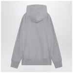 Light grey cotton sweatshirt from Champion, featuring a hood with drawstring, a kangaroo pocket on the front, long sleeves with a small logo patch on the wrist and ribbed edges.
