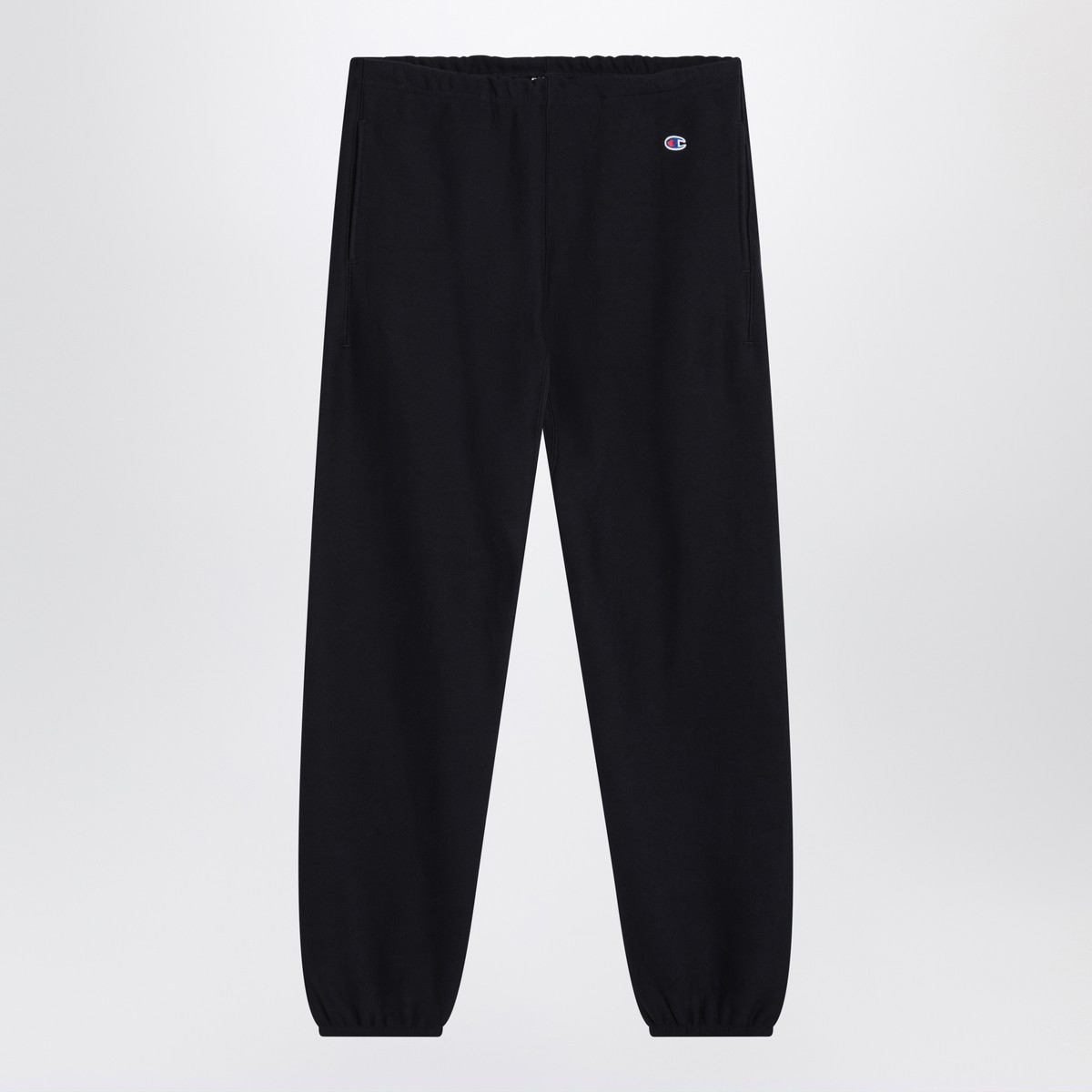 Navy blue cotton Champion trousers with elasticated waist, two side welt pockets, small logo patch on the front and a patch pocket on the back.