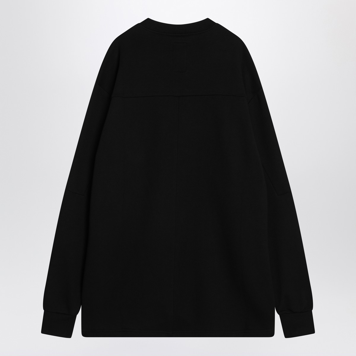 Rick Owens crew neck sweatshirt made in collaboration with Champion in black cotton, featuring long sleeves with one having a small logo patch, ribbed edges, and dropped shoulder.