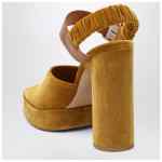 Chloé sandals in velvet and leather featuring an open toe, a strap with an engraved logo buckle, a ruched strap at the back, and a thick high heel.