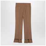 Beige virgin wool Chloé trousers featuring a low waist, a front zip and hook-and-eye fastening, front darts, two back welt pockets, two side welt pockets and an asymmetric hem.
