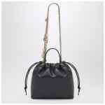 Chloé mini shoulder bag in smooth black nappa leather, featuring a chain shoulder strap with gold-tone metal decorations, top handle, drawstring closure and a single main compartment.