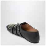 Chloé flat shoe in black leather featuring allover gold-tone metal studs, three buckle straps and leather sole.