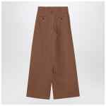 Chloé wide-leg brown cotton trousers, featuring a high waist with belt loops, a front zip closure with double button, two side welt pockets, two back welt pockets with button, and a crease at the front.